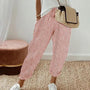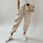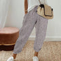These trousers for women comprise a tapered-leg design with rolled hems.